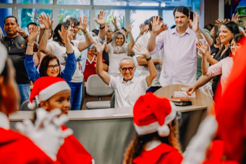 O clima de Natal já chegou ao Centro Administrativo Municipal (CAM) de João Pessoa com a apresentação de músicas natalinas pelo Coral de Libras Mãos que Cantam e Encantam, da Rede Municipal de Ensino de João Pessoa, e do Flashmob dos músicos da Secretaria de Educação e Cultura (Sedec). O prefeito Cícero Lucena e o vice-prefeito Leo Bezerra prestigiaram as apresentações realizadas na manhã desta segunda-feira (2), no hall do CAM, em Água Fria.
