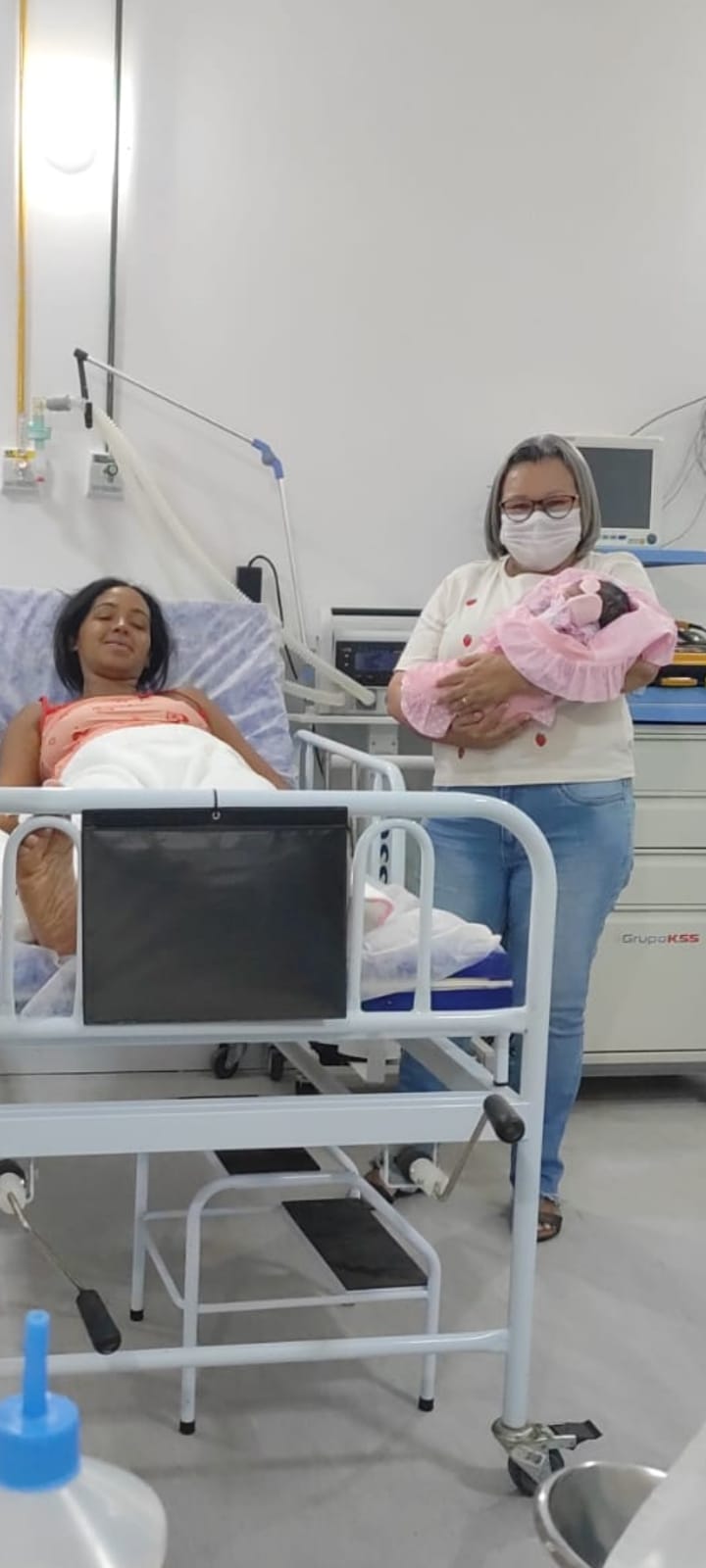 A mãe chegou a unidade em período expulsivo e a equipe realizou o parto. Mamãe e a primeira bebê a nascer no hospital, estão bem.