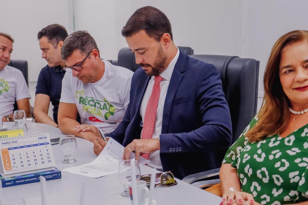 O prefeito Cícero Lucena assinou, nesta terça-feira (17), Termo de Cooperação Técnica com o Ministério Público da Paraíba (MPPB) para implementação da coleta seletiva, de forma sustentável, durante o Folia de Rua e Carnaval de João Pessoa. O documento oficializa a parceria entre as duas instituições, por meio do projeto ‘Recicla Folia’, que teve início na sexta-feira passada (14), coletando 5,01 toneladas de materiais recicláveis da Via Folia, na Avenida Epitácio Pessoa.
