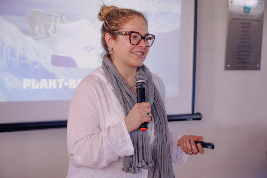 Pela primeira vez em João Pessoa, Cintia Arcola é brasileira e trabalha desenvolvendo uma linha de calçados – um tênis sustentável denominado Plant-based Sneakers. Ela já apresentou a marca na Inglaterra e Alemanha e, na Capital paraibana, ela expôs o produto, que não tem impactos ambientais e elogiou as dependências do Conventinho, dizendo que o local tem potencial para receber seus negócios.