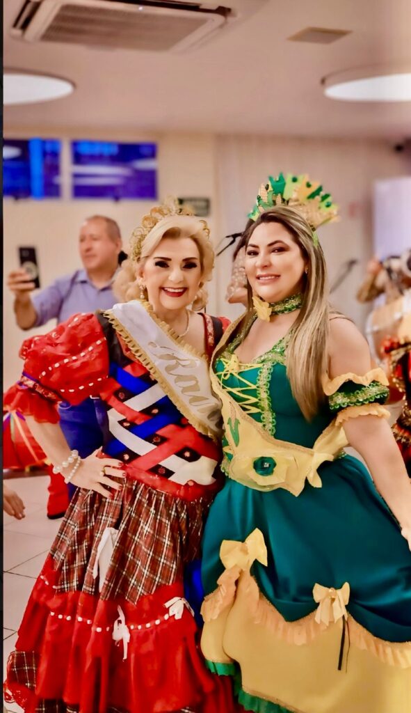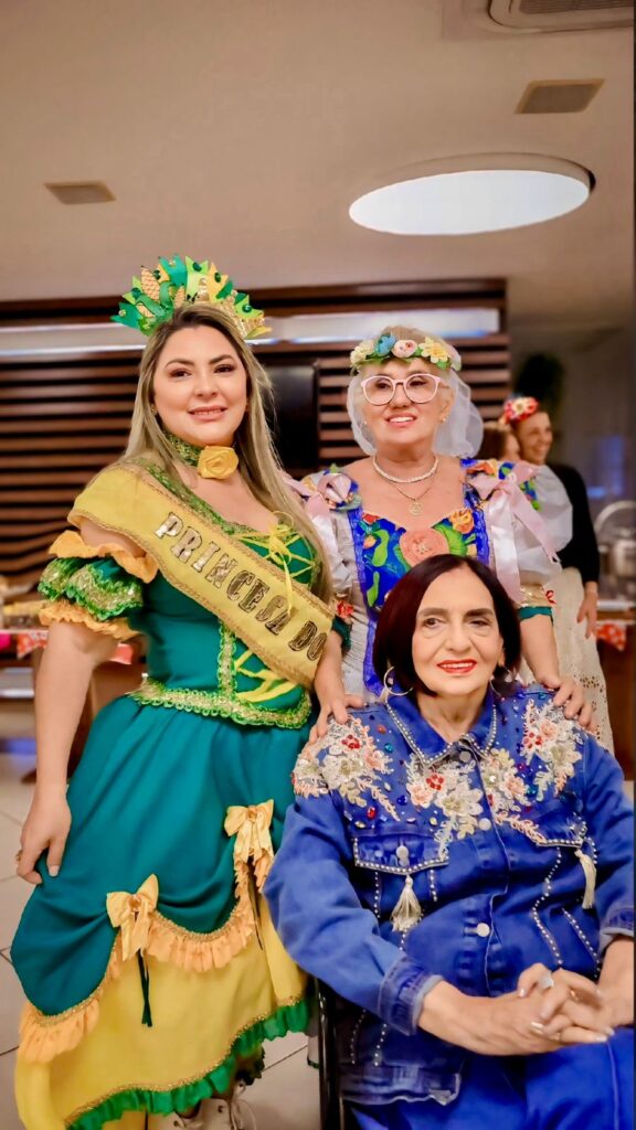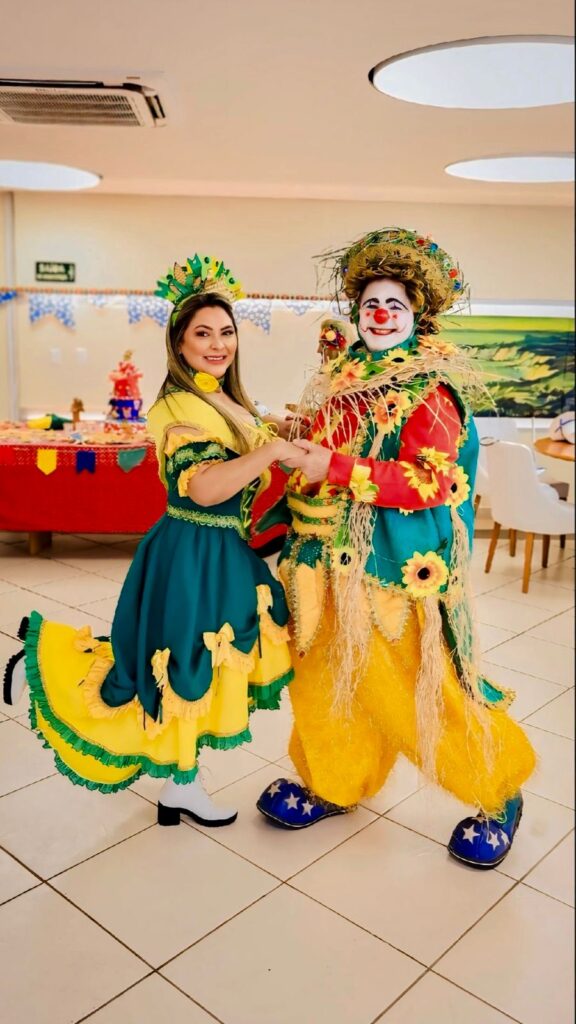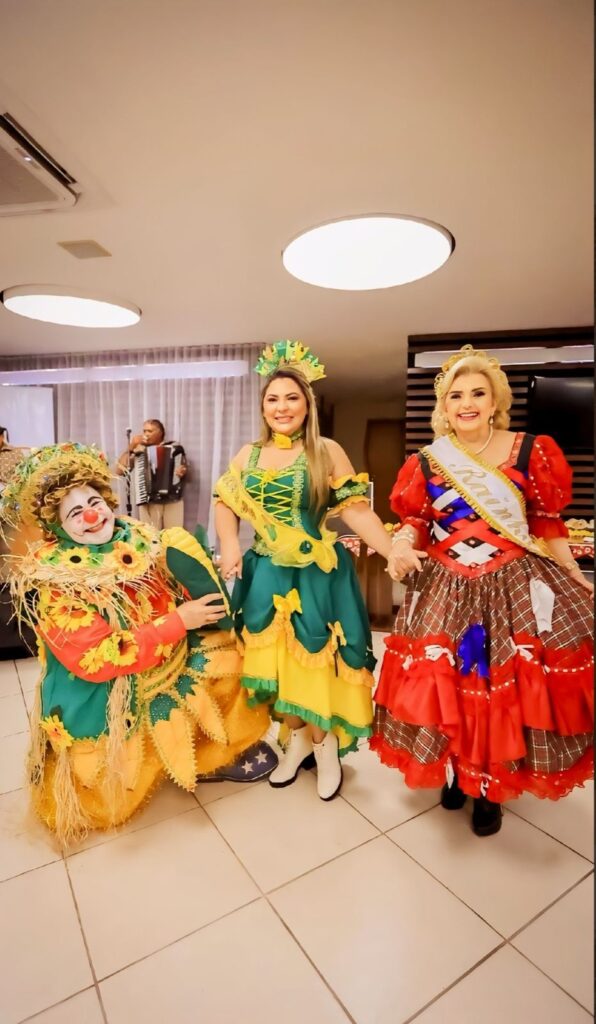 Tereza Madalena recebeu a faixa de rainha do São João, enquanto o animado Palhaço Pipi assumiu o papel de rei. Eu também tive a honra de receber a faixa de princesa do São João! Juntas, celebramos as tradições, dançamos forró e nos divertimos em um ambiente repleto de amor e alegria.