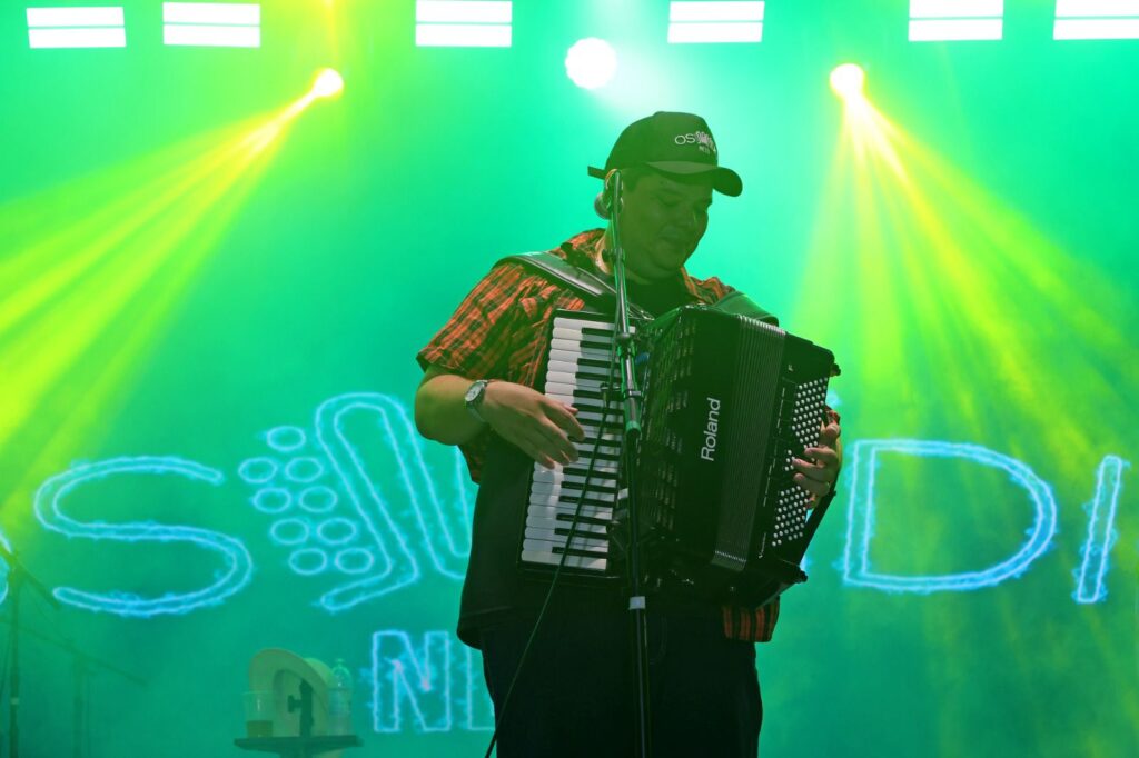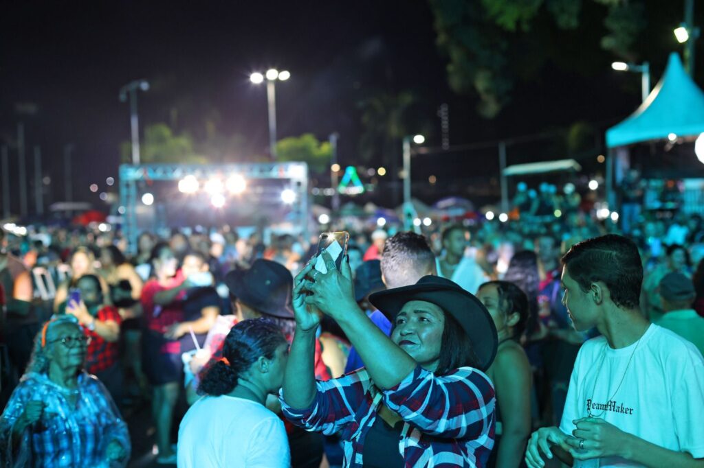 O artista Osmídio Neto subiu ao palco logo em seguida e fez o público dançar com seu repertório composto por forró pé de serra, arrasta pé, quadrilha, vaquejada e forró das antigas. “É muita alegria estar aqui numa data tão especial como hoje. Para o sanfoneiro, dia 23 é uma data muito especial. Então, estar em casa é uma satisfação. Muito obrigado à Prefeitura pelo convite”, agradeceu.