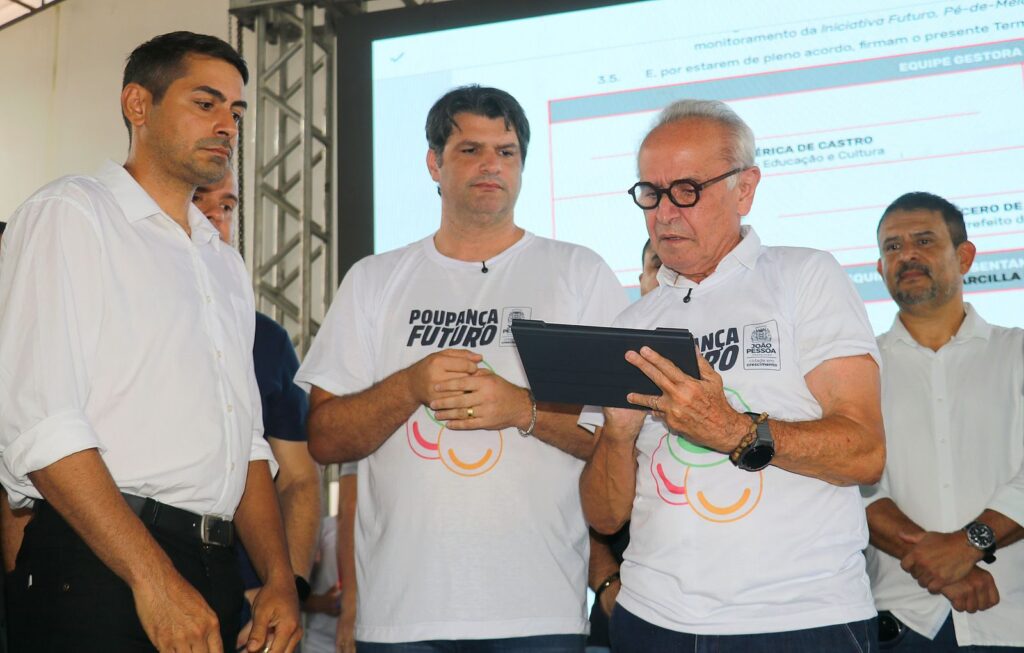 João Pessoa se torna a primeira capital brasileira a implementar, no âmbito do Município, o Programa ‘Iniciativa do Futuro’, que vai beneficiar, com a ‘Poupança Futuro’, cerca de 11.500 alunos dos 8º e 9º anos do Ensino Fundamental II, além da Educação de Jovens e Adultos (EJA). A assinatura do convênio e a apresentação do programa aconteceu na manhã desta sexta-feira (27), na Escola Tharcilla Barbosa, no Grotão, onde o prefeito Cícero Lucena adiantou que os estudantes já receberão o benefício na próxima segunda-feira (30).