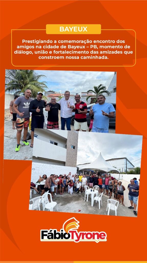 O encontro foi um momento de reencontros, conversas e troca de ideias sobre o futuro do estado, destacando a importância da política feita com respeito, proximidade e compromisso com as pessoas. “Estar em Bayeux, ao lado de tantos amigos e amigas, é renovar a fé e a vontade de seguir construindo juntos uma Paraíba de oportunidades, com desenvolvimento e inclusão”, afirmou Tyrone.