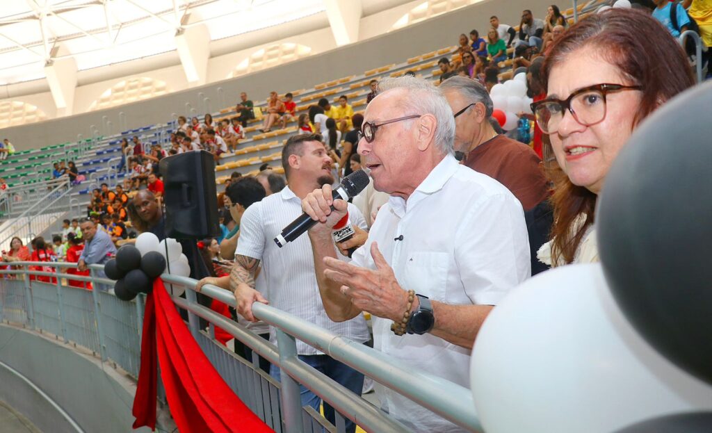 O prefeito Cícero Lucena fez a abertura, na tarde desta segunda-feira (21), da maior Olimpíada Escolar Municipal da história da Rede Municipal de Ensino de João Pessoa, que este ano reúne 12 mil estudantes, de 81 escolas, em 14 modalidades esportivas. Durante solenidade realizada no Ginásio O Ronaldão, no Cristo Redentor, o gestor da Capital destacou que a competição se insere numa pedagogia que vem aliando educação, cultura, tecnologia e programas de apoio estudantil.