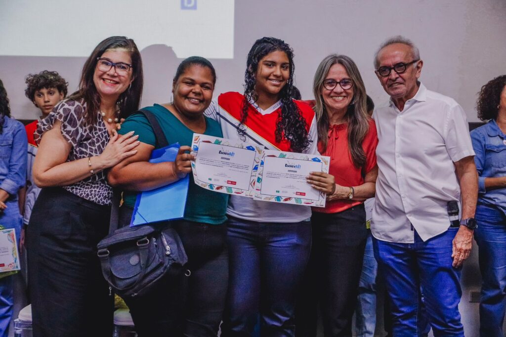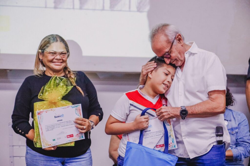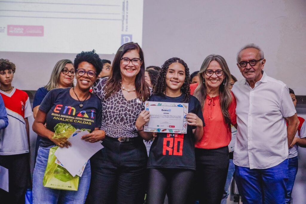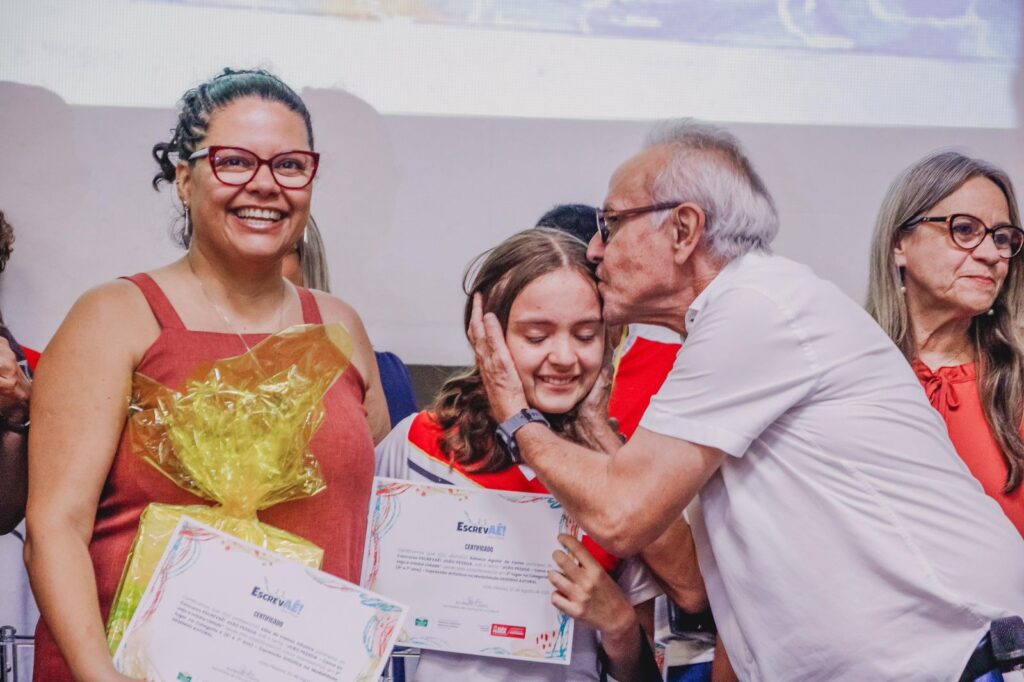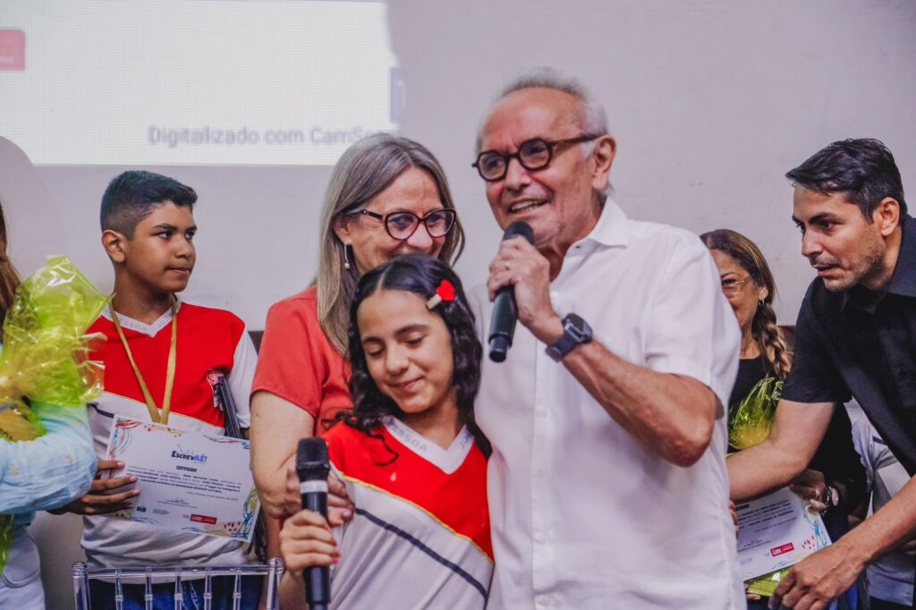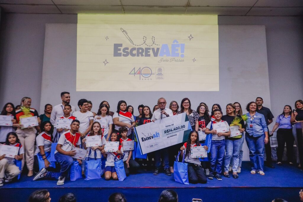 O prefeito Cícero Lucena entregou, na tarde desta sexta-feira (22), o prêmio ‘EscrevAÊ! João Pessoa’, projeto de incentivo à produção artística e literária na Rede Municipal de Ensino, que conheceu os vencedores nas categorias poema, relato, crônica e desenho. A solenidade foi realizada no auditório do Centro Administrativo Municipal (CAM), em Água Fria, com premiação total de R$ 14.400 para os primeiros colocados de cada categoria e os professores orientadores.